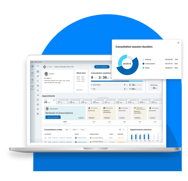 Provide professional care on the go with instant or scheduled telemedicine sessions, ensuring your patients are always supported.